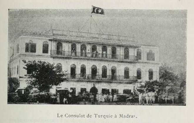 As you turn off the Triplicane High Road into the Wallajah Mosque compound in Chennai, you can’t miss the elegant old building, painted white, that stands defiantly graceful amidst the concrete jungle. The building whose grand entrance faces the mosque, that once welcomed foreign dignitaries, stands closed today, and with its back entrance open on the Vallabha Agraharam street, it operates as a lodge for weary travellers — both foreign and Indian. Wonder if any of them are aware of its rich heritage that connects Madras with the Turkic Ottoman Empire. As the smaller picture reveals this was once the grand Ottoman Turkic consulate in Madras.